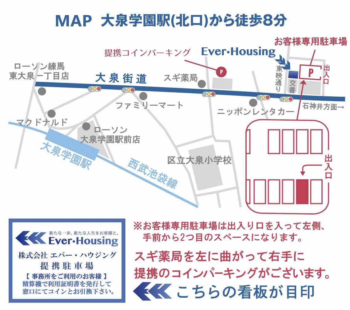 【隣接地にお客様専用駐車場と近隣に提携コインパーキングもございます!】