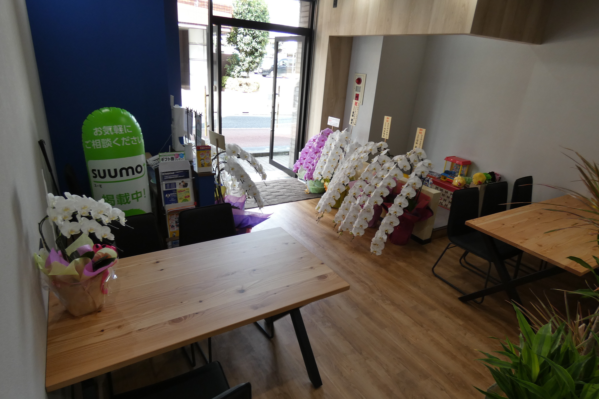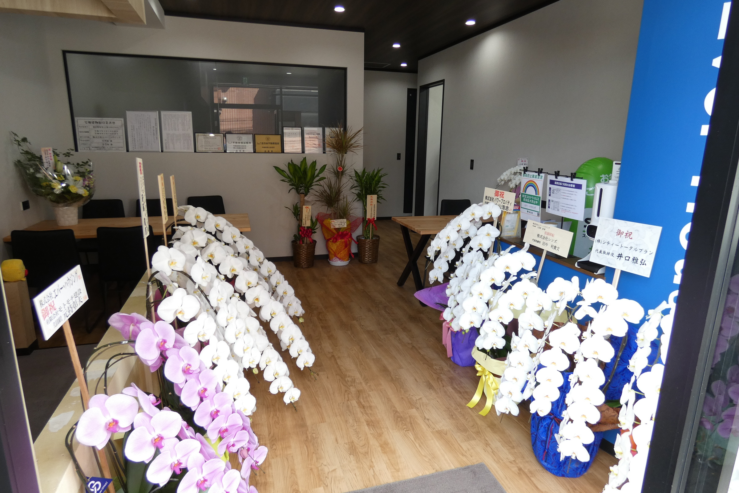 【店舗内入り口付近です。沢山の胡蝶蘭と素敵な植栽を頂きました!】