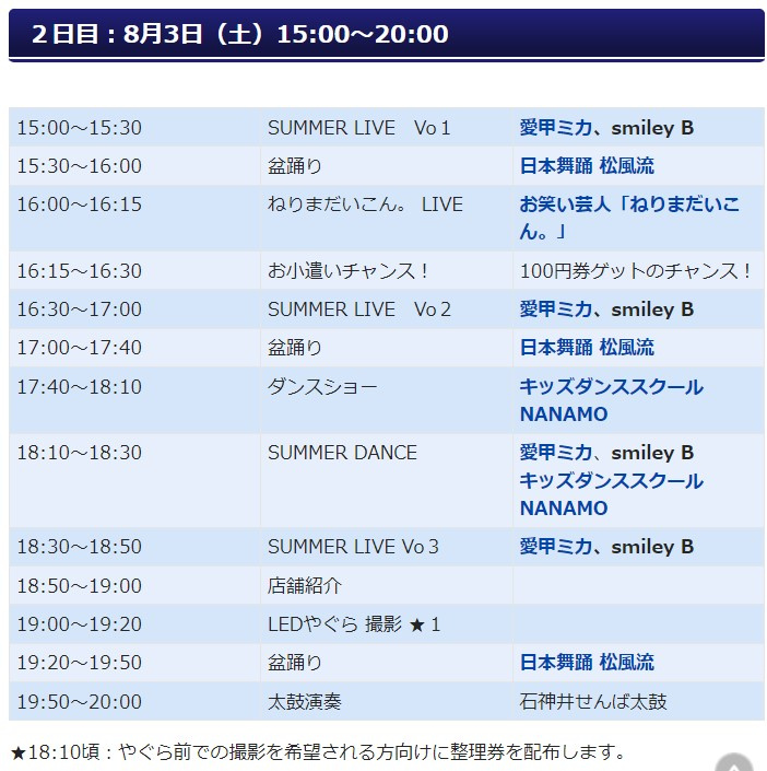 一日目は終了してしまいましたが、本日もお祭りは行われていますので詳細を掲載しておきたいと思います。