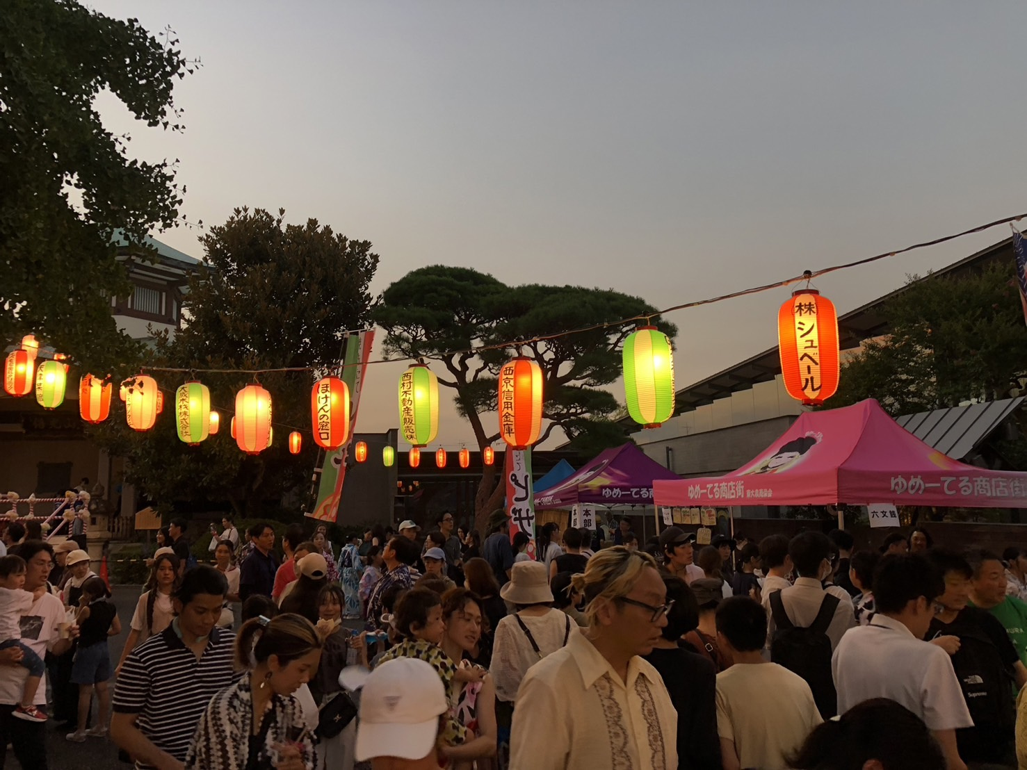 夜が更けるにつれて人も増えていました。お祭りに来ると夏を感じますね♡