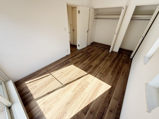収納力たっぷりのこちらの寝室も床とクロスの張替えを行っています。