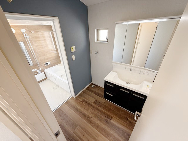 洗面脱衣室には新しく交換した洗面化粧台を備えました。