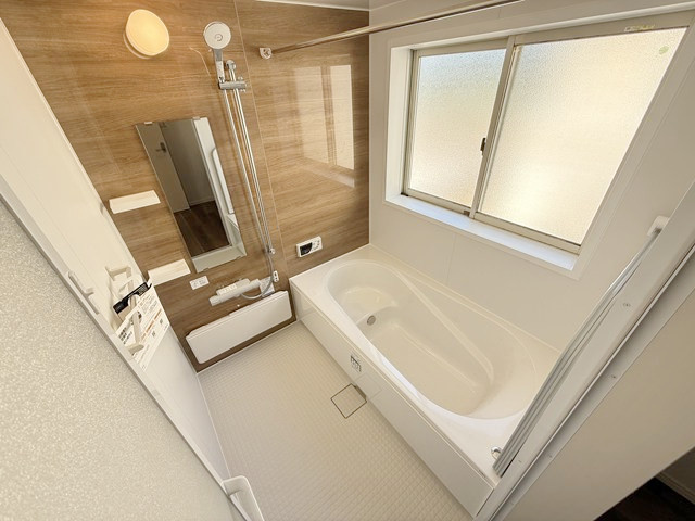 お風呂は新規交換。木目調の暖かなイメージのデザインです。